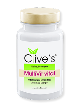 Clive‘s® MultiVit vital ist ein Multivitaminpräparat mit Ginseng für die tägliche Versorgung von Vitaminen, Mineralstoffen und Spurenelementen.